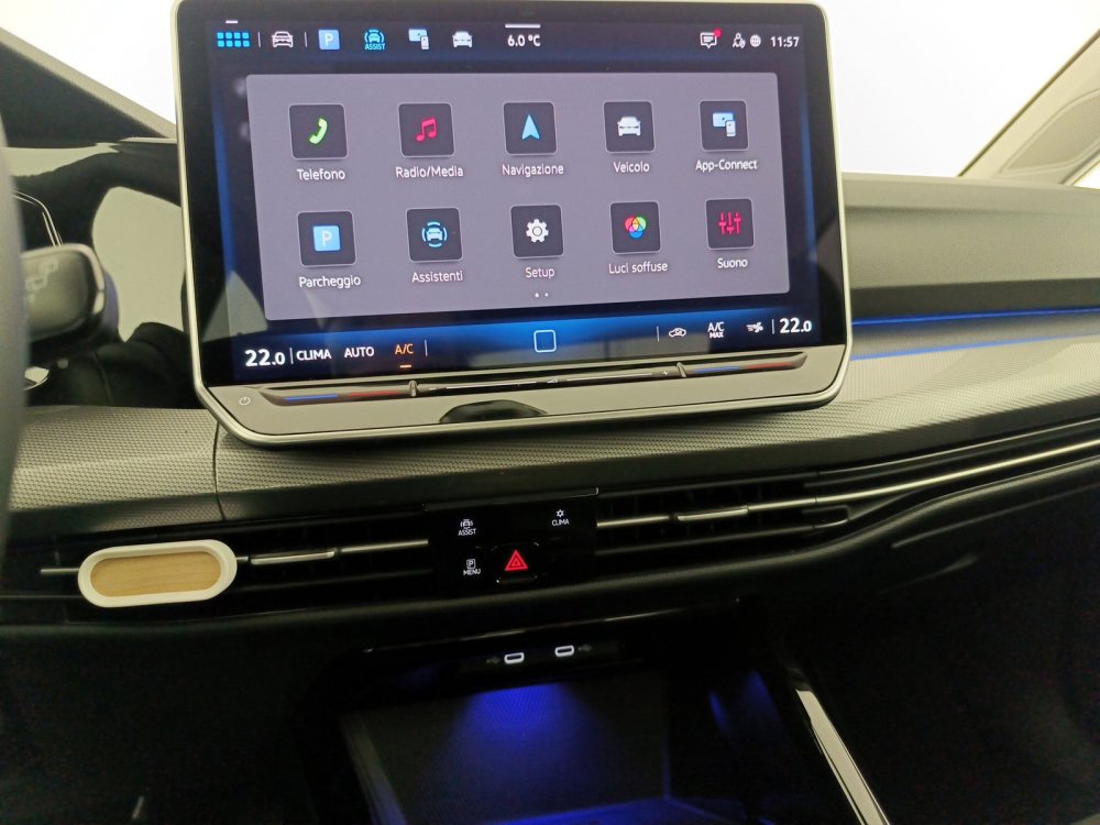 DRL led (profilo superiore e inserto centrale tra i proiettori e logo VW illuminati)