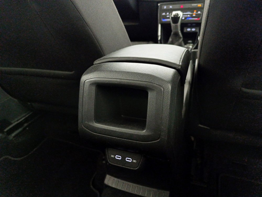 Bracciolo centrale anteriore con vano portaoggetti regolabile in altezza e profondità con 2 ingressi USB-C di ricarica posteriori